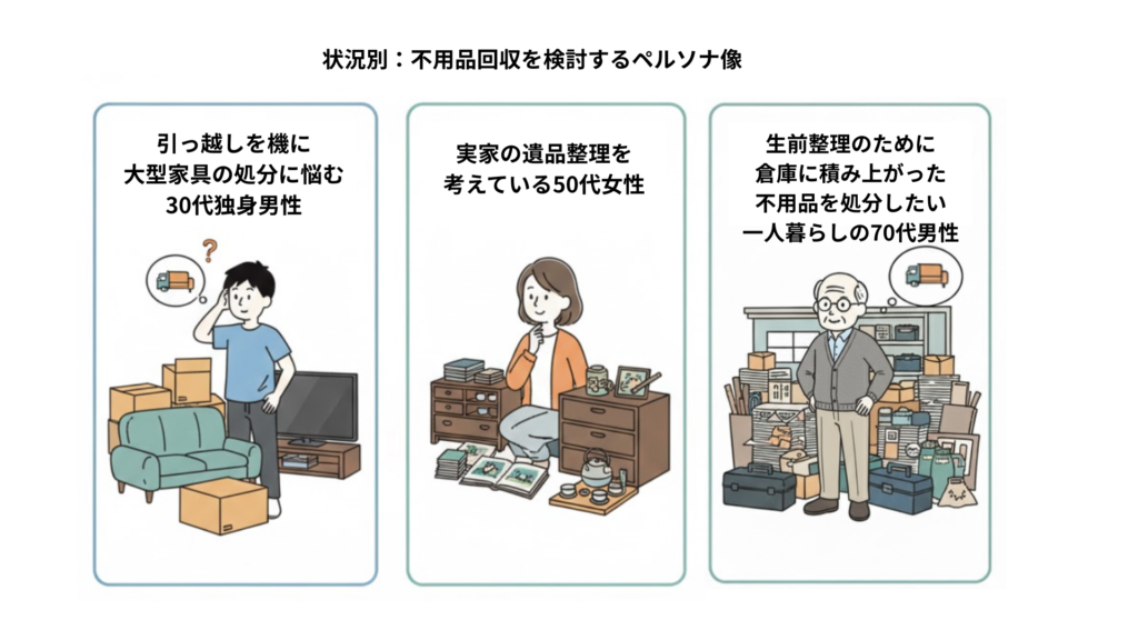 不用品回収を必要とするユーザーは、以下のように緊急性の高い問題を抱えている場合が少なくありません。