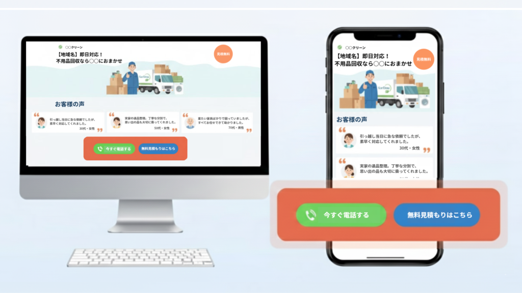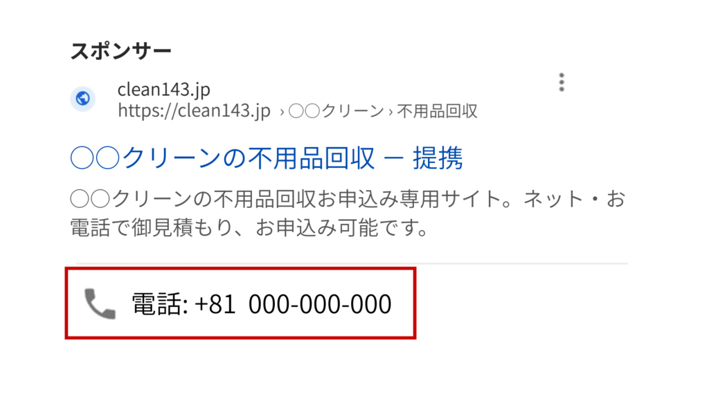 ユーザーがこの広告をクリックすると、設定したLP(ランディングページ)に移動し、自社の不用品回収サービスについてくわしく知ることができます。