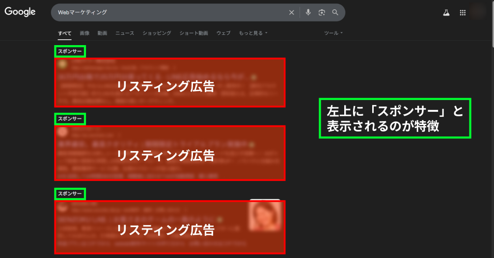 リスティング広告とは、ユーザーが検索エンジンで検索したキーワードに応じて、検索結果画面に表示されるテキスト形式の広告です。