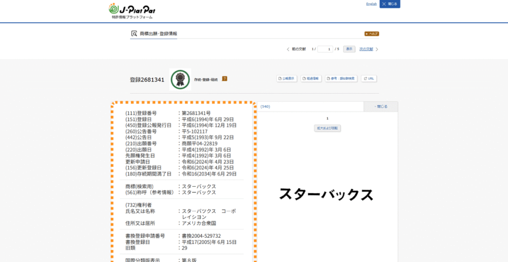 商標登録があれば上図のように表示されますので、テキストリンクをクリックします。