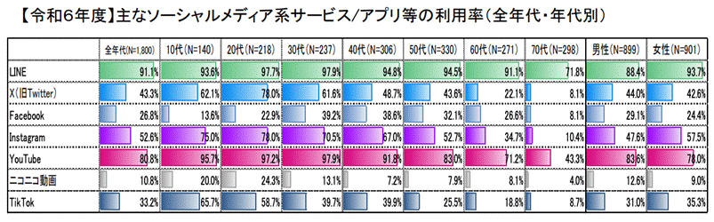 下図のように、日本国内でも幅広い世代で利用者が増加しており、その影響力はビジネスの世界にも大きな影響を与えています。
